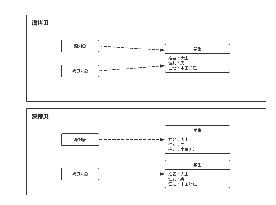 在Java语言里,当我们需要拷贝一个对象时,有两种类型的拷贝:浅拷贝与深拷贝。