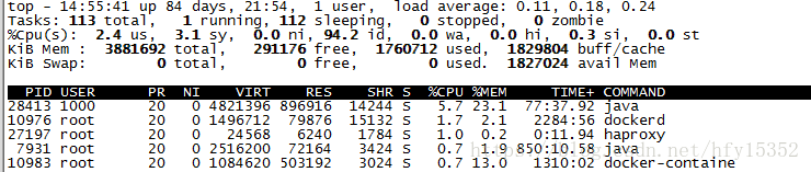 登录到服务器上,我们使用TOP命令可以很全面的看到系统资源使用情况