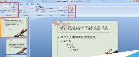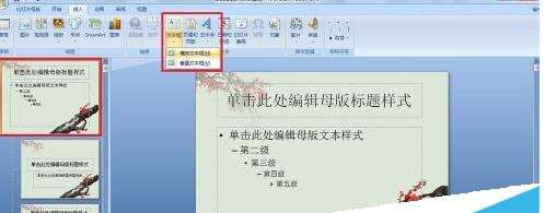 依次点击幻灯片母版-选择根级母版(这点很重要)-返回菜单栏点击'插入'-'文本框'-'横排文本框';