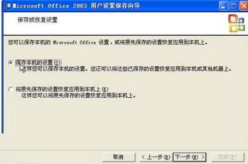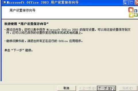 Office 2003 用户设置保存向导”菜单项,打开“Microsoft Office 2003