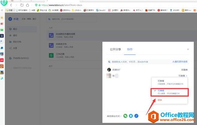 回到分享的页面上,我们可以看到新加入的用户处于“可编辑”状态: