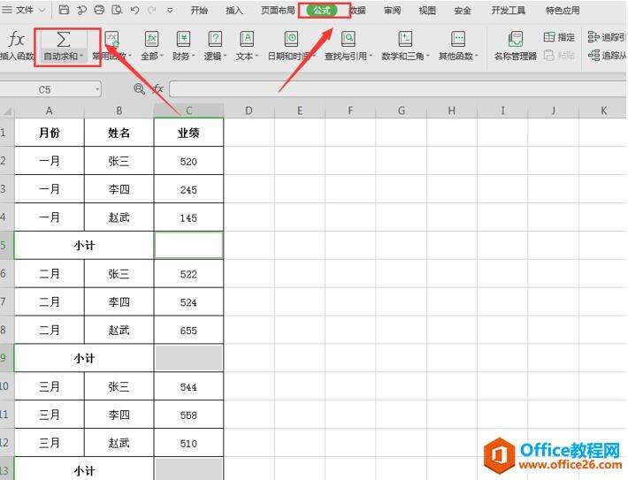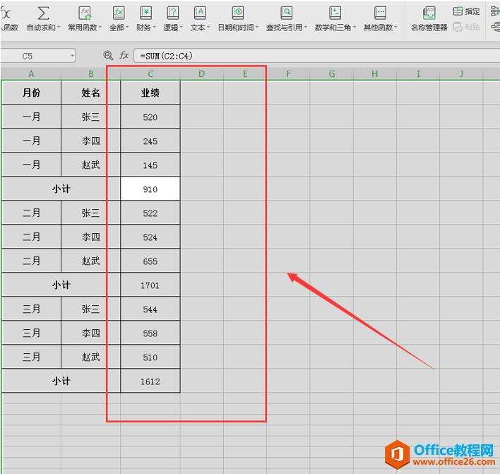 以上是为您收集整理的【WPS Excel中如何快速对不连续的小计行求和】办公软件教程的全部内容,希望文章能够帮你了解办公软件教程WPS Excel中如何快速对不连续的小计行求和。