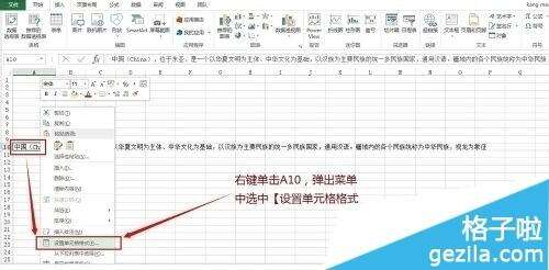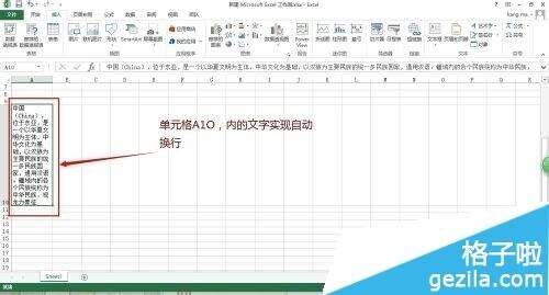 在A10单元格输入一段文字;
