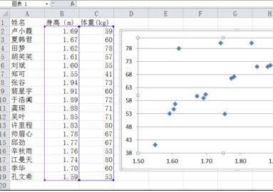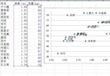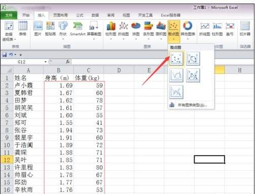 打开数据集,选择数值型数据,插入“散点图”,即获得该数据集的图形。