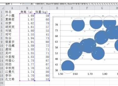 由于Excel不能直接添加标签,我们需要自己编写宏来完成这个过程。因为这儿有供参考的添加气泡图系列文本标签,先将图表类型更改为气泡图。
