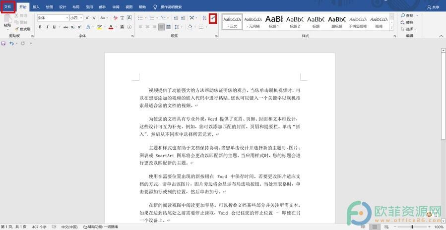 第一步:打开Word文档,可以看到“开始”选项卡下“段落”栏中的“段落标记”没有打开,但是文档中还是显示了段落标记,我们点击界面左上角的“文件”;