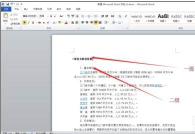 我们需要先打开你的文档,假如你需要设置如下的一二级目录。