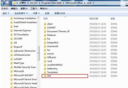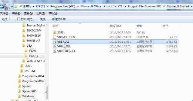 OfficerootVFSProgramFilesCommonX86Microsoft SharedVBA,这个因人而异,只要找到VBA文件夹就行。