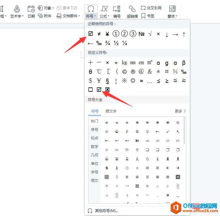 以上是为您收集整理的【WPS方框内添怎么加√符号】办公软件教程的全部内容,希望文章能够帮你了解办公软件教程WPS方框内添怎么加√符号。