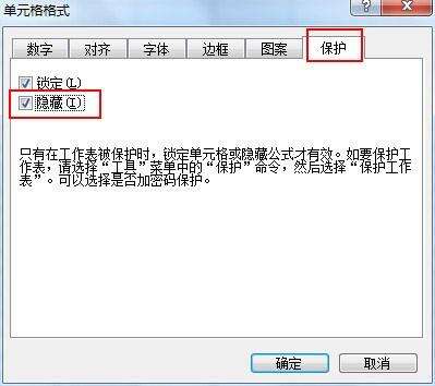 先框选选中单个或者部分单元格,然后在菜单栏上面点击:格式—单元格–保护“中点击选中“隐藏”按钮。如图所示: