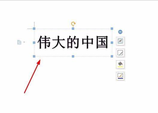 6、在这个对话框内输入文字,并选择刚刚输入的文字,可以看上面有个在旋转图标,如图所示: