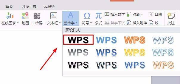 4、点击艺术文字选项,在其子级菜单里选择一种样式,如图所示: