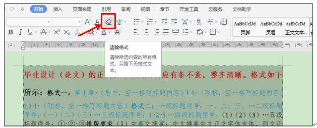 看上去非常的乱,而且格式也不统一,看着有种眼晕的感觉,下面我们就来给大家变个魔术,使它瞬间就可实现格式统一的变化。首先,我们按Ctrl+A键,选中所有的文字,然后在开始菜单栏下找到一个橡皮擦一样的工具,如下图: