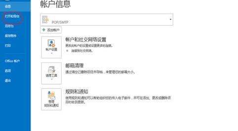 然后我们在文件菜单项下,选择左方树形菜单中的第二项<打开与导出>,如下图所示红圈所在位置
