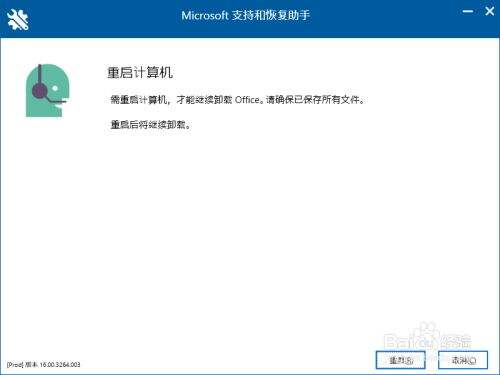 下一步之后会到这个页面,现在需要重启电脑了,点“重启”电脑就会重启,这个时候还没有完全卸载完,不要点击取消(我没试过,不知道点了会有什么反应)。