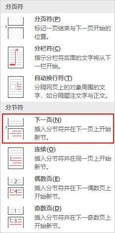 将鼠标光标放置在上一部分的文档末尾,点击【布局】-【分隔符】-【下一页】,即可以完成分节符的插入。