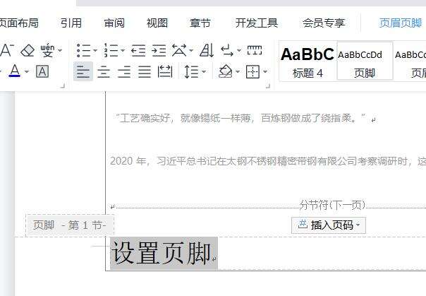 1.首先用户使用wps软件来打开文档,进入到页面上后用户需要选中页脚文字