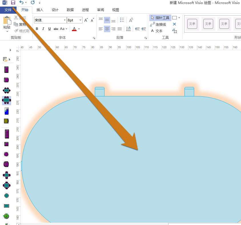 使用Microsoft Office Visio软件的形状,添加一个图形到visio软件界面。