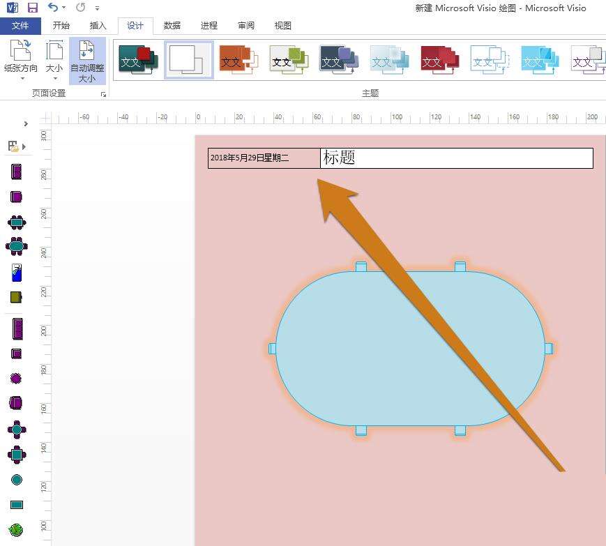 然后在visio的功能区,点击设计按钮。