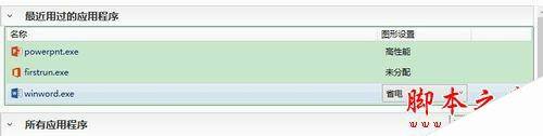 在最近应用的程序里可看到winword.exe,这个就是word软件,如果找不到可点击添加应用程序,在office安装目录下找,找到后,在图形配置里改为省电,点击应用。这时候再打开word应该就可以用了,不用在安全模式下进入。