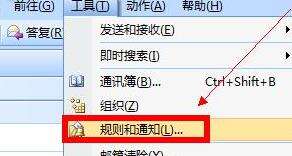 我们需要先打开Microsoft Office Outlook(微软邮箱),找菜单中找到“规则和通知”后单击。
