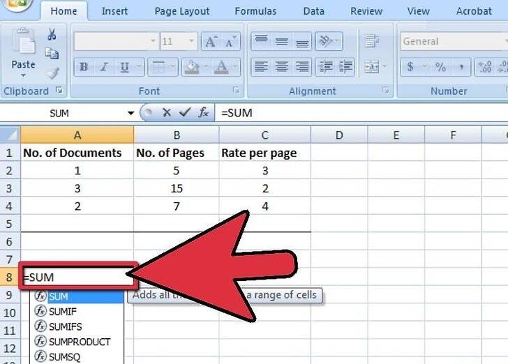等你按下“=”之后,Excel会弹出一个下拉菜单,上面列出了所有可用函数。单击求和,即可使用求和功能。