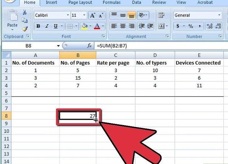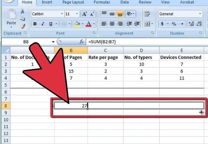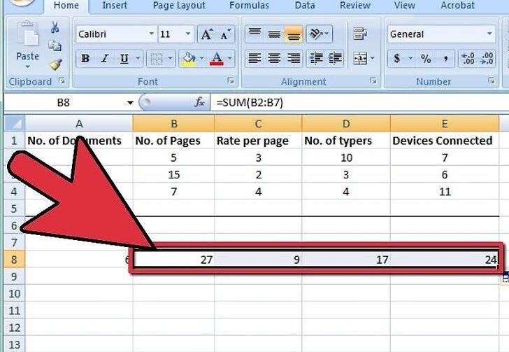 Excel会自动把B4单元格到B7单元格中的数据相加。