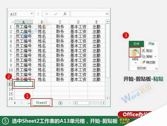 5、切换到Sheet2工作表,选中A13单元格,然后粘贴。