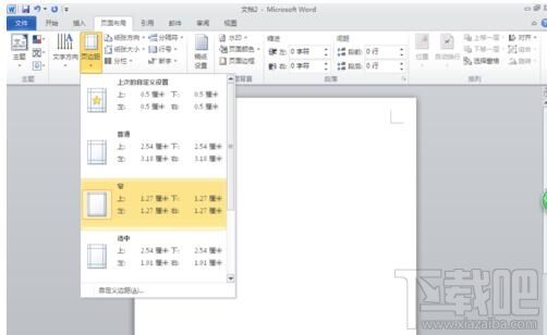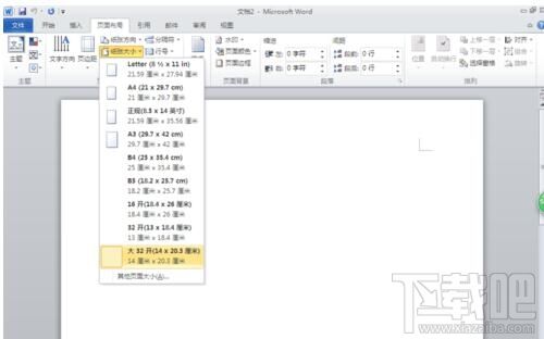 点击“页面布局”,单击“纸张大小”选择大32开(14*20.3)选项,再选择页边距选项,选择窄