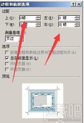 点击“选项”,把边框的四个值都改为“0”