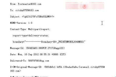 接着出现的邮件【属性】对话框下方的internet邮件头就是我们要的信息了