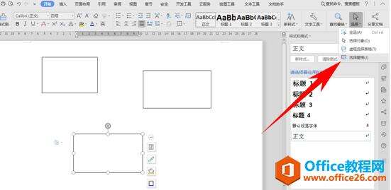 单击工具栏开始下的选择,在选择的下拉菜单当中选择“选择窗格”,如下图所示。