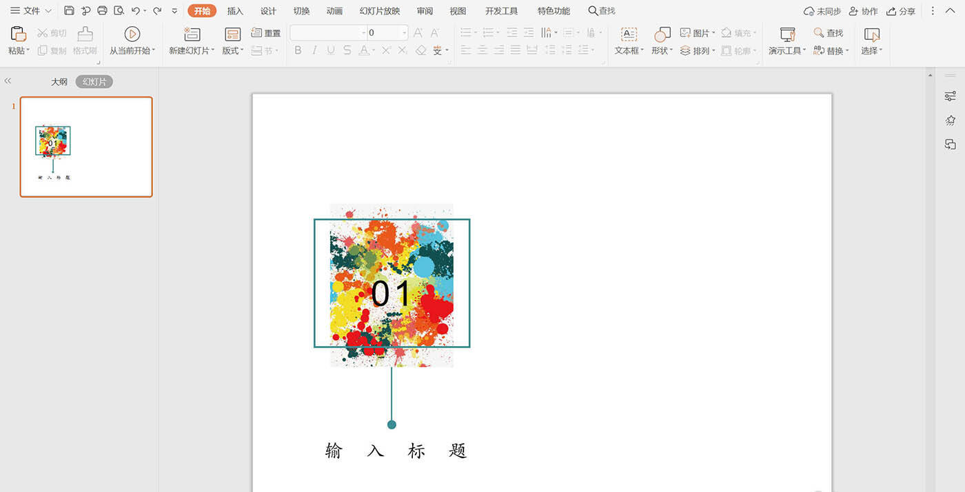 6、在矩形中输入序号,在矩形下方输入标题,这样彩色墨迹型目录样式就制作完成了。