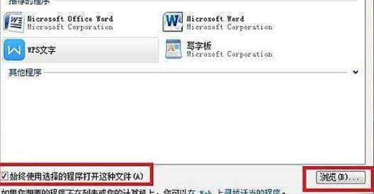 2、勾选“始终使用选择的程序打开这种文件”并点击“浏览”。