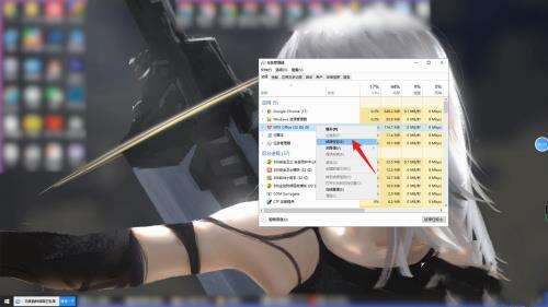 进入任务管理器的页面之后,在任务管理器的页面右击WPS office等弹出栏。