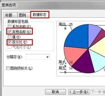 进入图标选项中,勾选类别名称及百分比,然后点击完成。