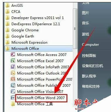 在Microsoft Office Word主界面,打开开始处出现的word选项。