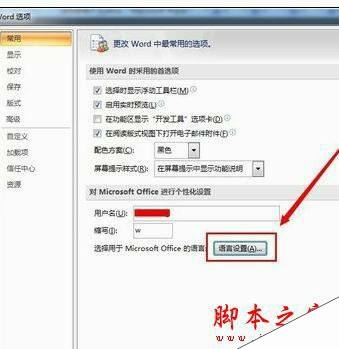 点击常用处的语言设置(A)…,打开语言设置面板。