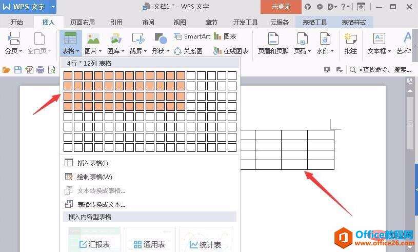 通过随意添加表格到文档内编辑区。