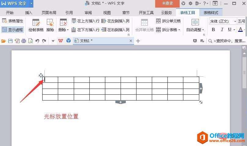 添加完成以后将光标放到左上角第一个单元格左侧位置。