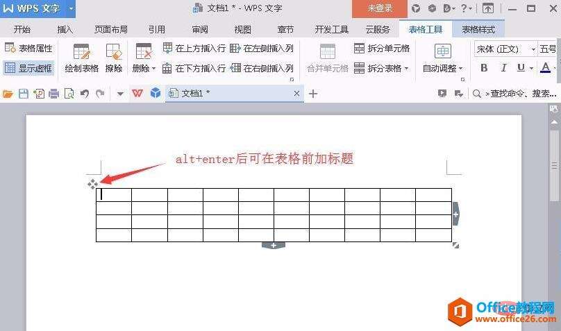 通过键盘按下alt+enter键完成表格前可添加标题。