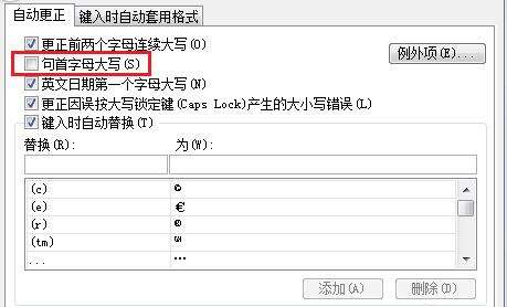 这时我们在打开的“自动更正”对话框中,取消“句首字母大写”选项前面的“√”号,然后依次点击“确定”按钮