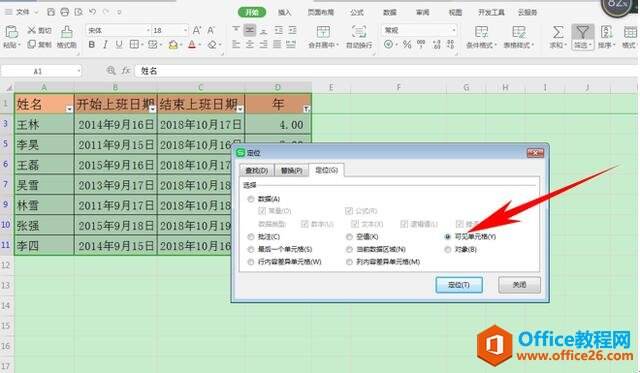 然后数据就筛选完毕了,然后按住快捷键Ctrl+G,弹出定位的对话框,单击可见单元格选项,单击定位。