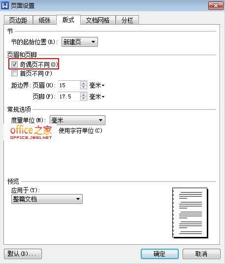 切换到布局选项卡,检查奇数页和偶数页之间的差异。