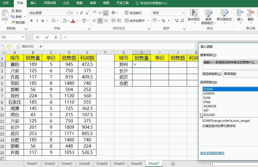 现需匹配郑州、长沙、武汉、合肥4个省会城市的销售量、单价、销售额、利润额。