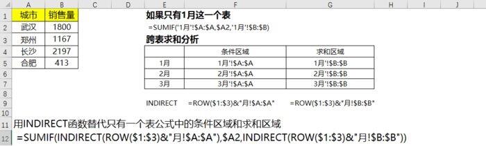 =SUMPRODUCT(SUMIF(INDIRECT(ROW($1:$3)&”月!$A:$A”),$A2,INDIRECT(ROW($1:$3)&”月!$B:$B”)))