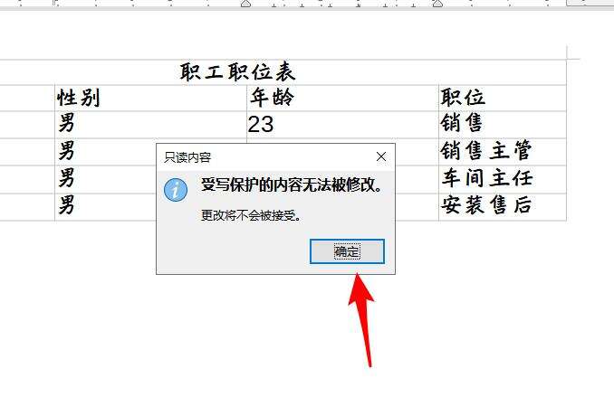 4、之后当用户要修改已保护的单元格内容时就会出现下图所示的错误提示。