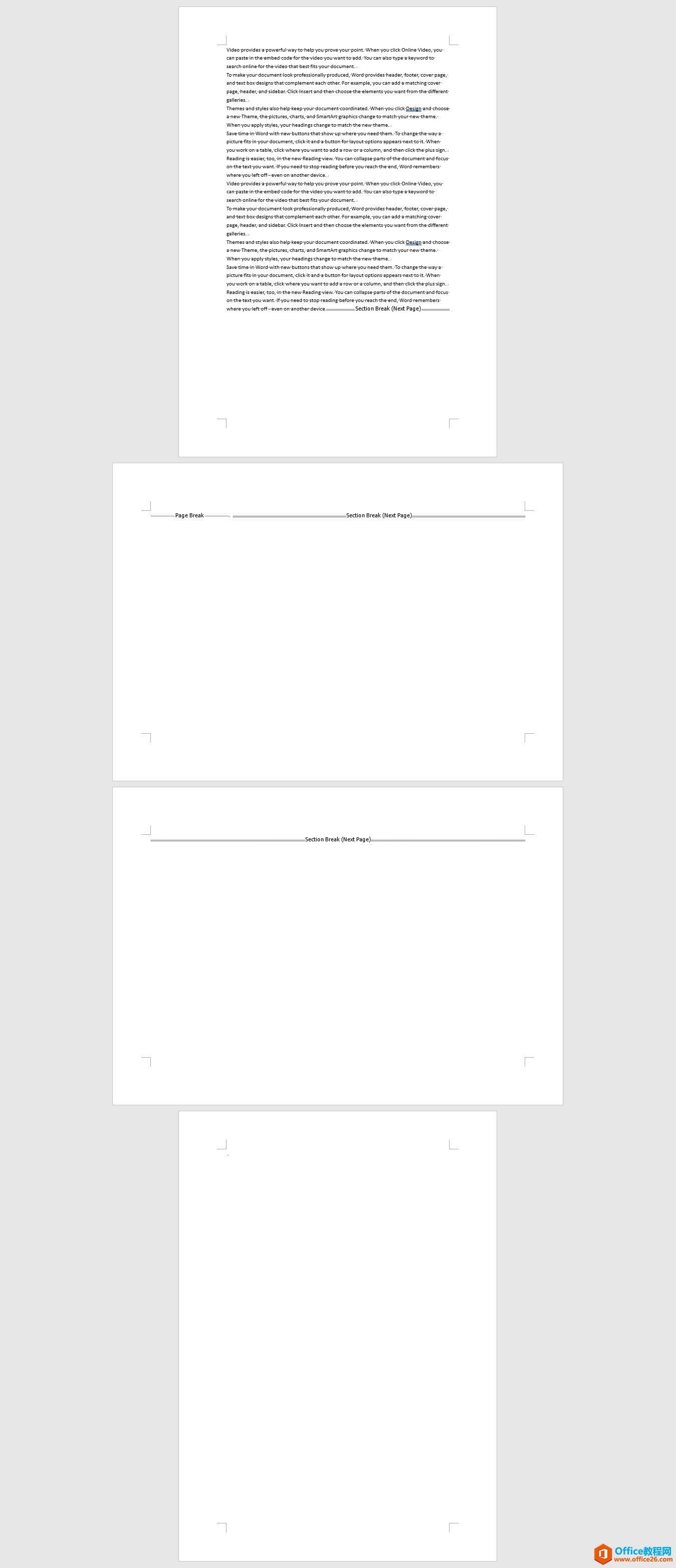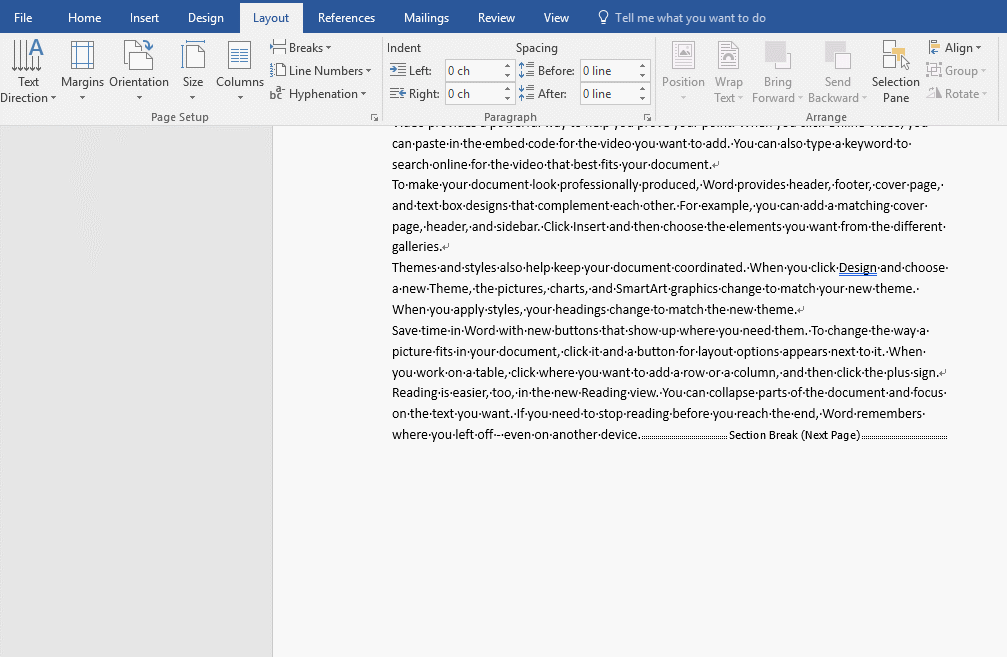 新建一个Word文档,将光标放在段落的末尾,然后在页面布局(Layout)-分节符(Breaks)中,插入分节符(Section Breaks)-下一页(Next Page)。如动图的操作:
