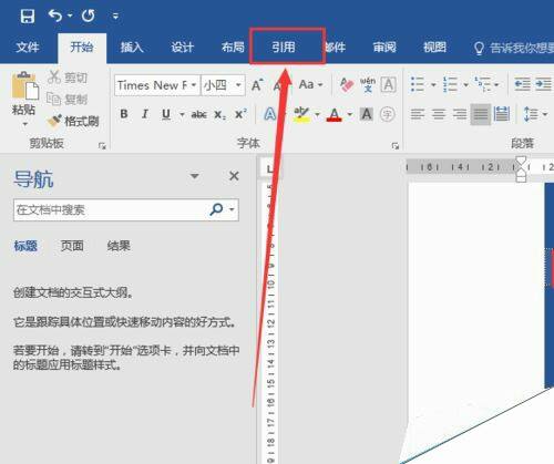 4、在打开的文档界面单击页面上方的【引用】选项卡: