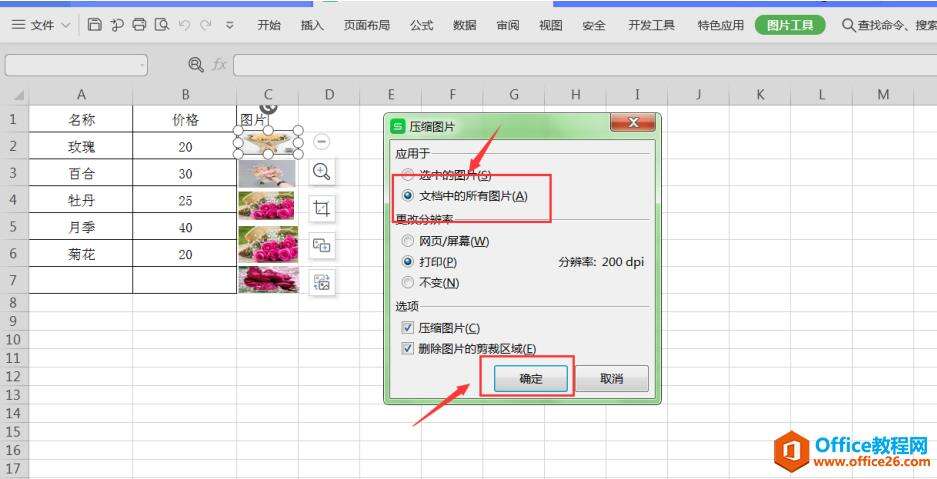 2、这时,菜单栏中会出现【图片工具】选项,单击【图片工具】,选中该项下的【压缩图片】功能;